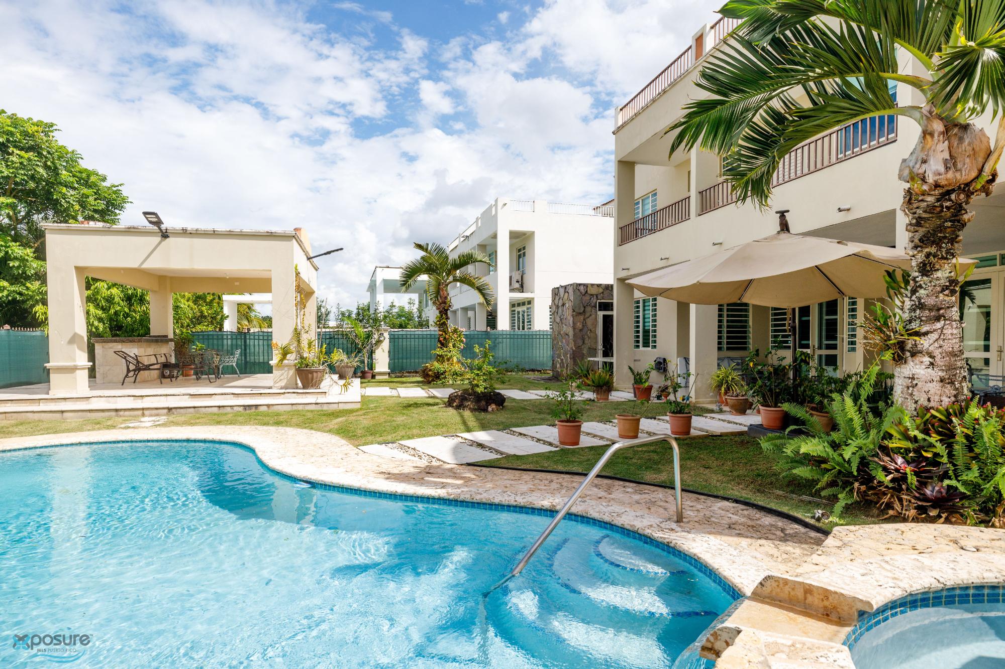 Home in Caguas Real – Elegance, Glamour, and Resort-Style Living. Live surrounded by luxury in this stunning 3,835-square-foot residence, designed for those who value exclusivity, comfort, and a resort-style living experience. This property combines spaciousness, sophisticated architecture, and exceptional amenities within one of Caguas' most prestigious gated communities. The residence features marble floors and four bedrooms, each with its own walk-in closet and air conditioning, offering a life of complete comfort. It includes three full bathrooms, two half bathrooms, and a spectacular master suite, accessed directly from the elevator to a private foyer. This master suite features a balcony and jacuzzi, creating a sanctuary of relaxation and luxury. High ceilings add spaciousness, while windows with draped curtains fill the rooms with natural light. The expansive living room incorporates a powerful 36,000 BTU air conditioner, ensuring coolness at all times. Outside, the property offers a swimming pool ideal for family enjoyment and a separate jacuzzi, perfect for relaxing in a more private setting. It also features a gazebo, ideal for outdoor activities. The residence also offers direct rooftop access, a perfect space to create a custom terrace and enjoy exclusive views. The home also includes a security camera system, diesel generator, 400-gallon cistern, water filter, garbage disposal, PVC cabinetry, laundry room, and a two-car garage. The kitchen comes equipped with a refrigerator, stove (cooktop), oven, and wine cooler. As part of the community, you can enjoy: • Children's playground • Basketball court • Tennis court • Gym • Swimming pool • Activity center • Security and access control • A golf course is coming soon. Strategically located near the highway, it combines convenience with the privacy and glamour that characterize this exclusive community. If you would like to learn more, we would be happy to assist you..