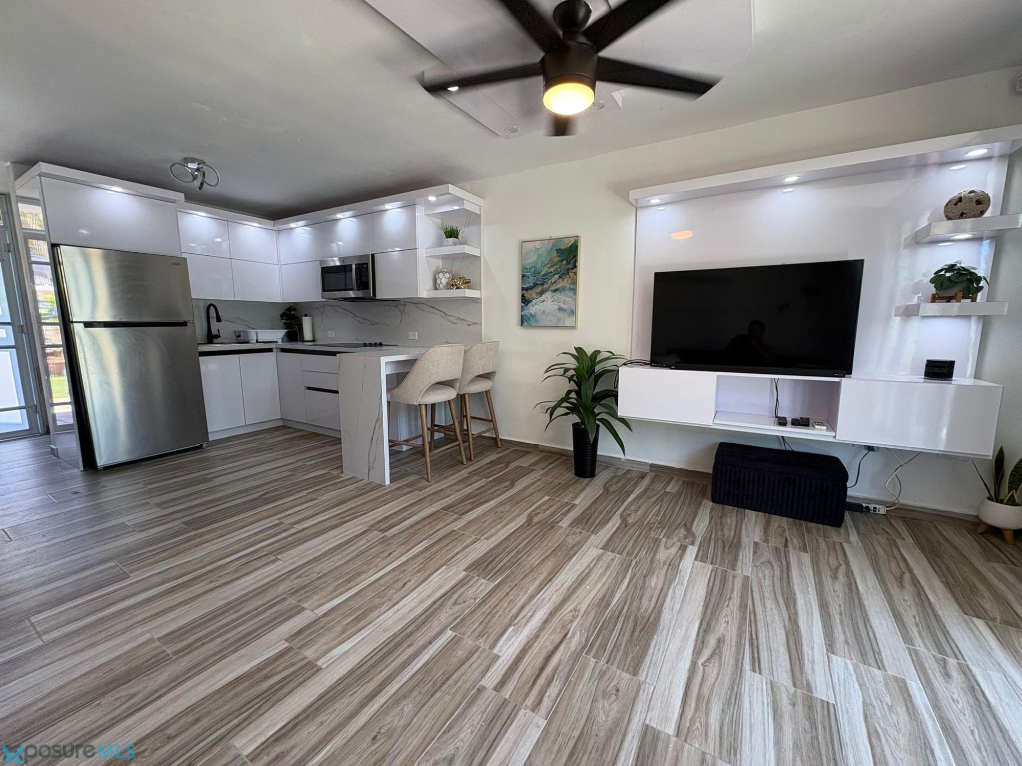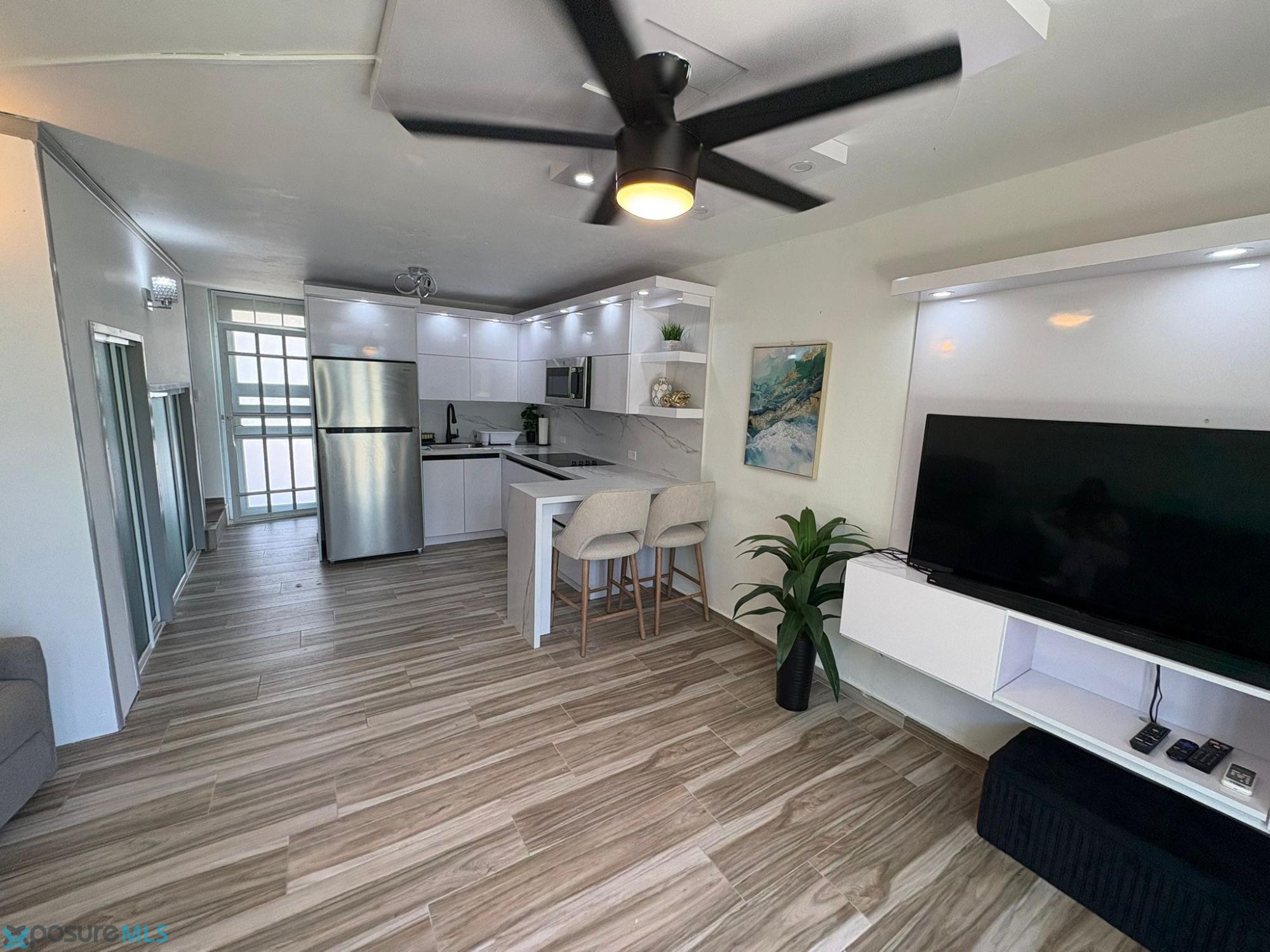 Oceanfront villa in Mar del Sur, Arroyo, Puerto Rico. Completely remodeled and move-in ready. Features 2 bedrooms, 1.5 bathrooms, air conditioning, and a modern, fully equipped kitchen. Includes one assigned parking space. The property offers direct beach access and excellent amenities, including a swimming pool, basketball court, gazebo, and recreational areas. Located in the municipality of Arroyo, with easy access to shops and services. Short-term rentals are not permitted..